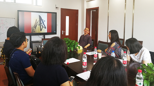 6月8日,创意设计学院院长王正明教授在3号楼大师工作室为台湾树德科技大学师生做了《以“集:一个甲骨文字的视觉演绎”》为主题的讲座。介绍了艺术创作与传统文化两者之间的关系,鼓励青年学子深入领悟传统中的“中国特性”,吸取“外来”优秀的元素和理念,兼收并蓄,融会贯通,构建出独特、优秀的设计作品。