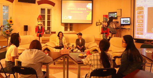 “影视新视角”于6月7日下午6:30在德语实训室进行。现场有来自学校八个院系的20余名同学参与了影评。同时,现场还邀请了学校心理健康咨询中心陈江媛老师和英语语言文化学院学生党支部书记冉蓉老师参与讨论。在温馨、舒适、松弛的环境下,学生们各抒己见,从不同的视角反馈观影心得。现场讨论热烈、掌声迭起。同时,陈江媛老师从大学生人际交往、社会支撑的角度,给同学们梳理了人际交往中社会支撑和感受到的社会支撑的重要性。