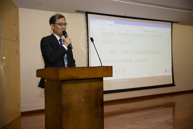 大韩民国驻上海总领事馆文泰烈教育领事和韩国国际交流财团北京事务所李仁赫所长先后致辞,高度评价了我校韩语系在韩语人才培养和中韩交流中起到的重要作用,并表示将一如既往地支持中国韩国语教育事业的发展。