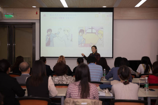 随后,全南大学金东瑾教授、高丽大学金贞淑教授和上海海洋大学全龙华教授做了主题演讲,分别从韩语教学中的诗歌应用、韩语评价方法、韩语专业人才培养方案等方面进行了讲解,反响热烈。