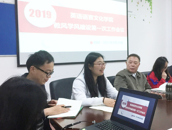 4月29日,英语语言文化学院在11201会议室召开了教风学风建设第一次工作会议,会议由副院长申洪波主持。参会教师会前认真准备,会上充分发言,围绕提高在线学习平台的利用率、学生课堂分组活动、教材使用、教学资源库建设、外教教学工作安排、师德师风等方面,进行了热烈讨论并提出了观点和建议。
