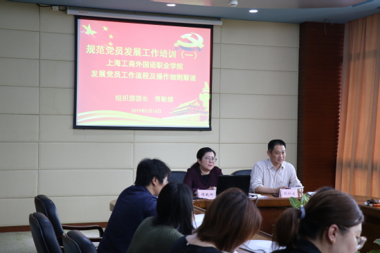 随后校党委组织部部长傅敏娜就《上海工商外国语职业学院发展党员工作流程及操作细则》做了专题解读。她结合发展党员过程中的各类表册,详细讲解了党员发展过程中申请入党、入党积极分子的确定和培养教育、发展对象的确定和考察、预备党员的接受和审批、预备党员的教育、考察和转正等五大环节的细致性工作及注意事项,并强调了发展党员工作的组织领导和纪律。