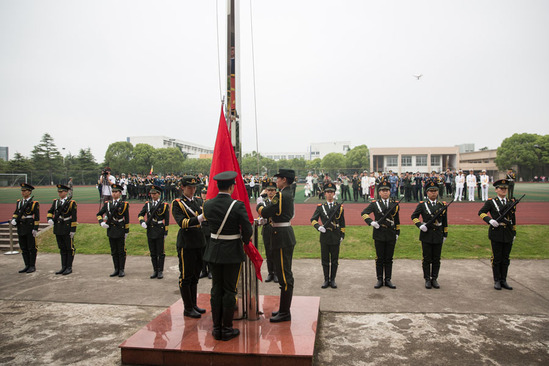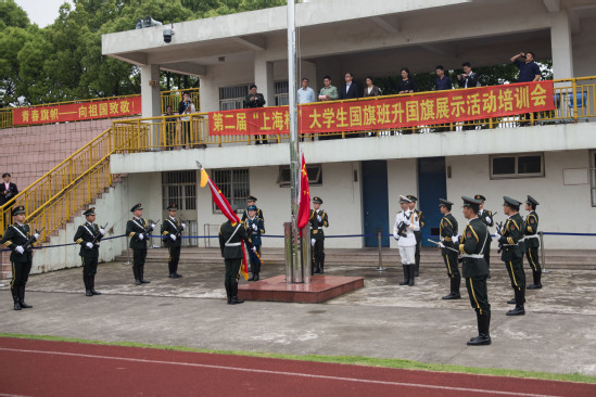 516日,“青春旗帜——向祖国致敬”第二届“上海杯”大学生国旗班升国旗展示活动培训会在我校顺利举行。培训上半场在学校8号楼二楼报告厅开展,市教委体卫艺科处副处长赵靖茹,上海市人民武装学校校长楼陆建,上海市高校国防教育协会常务秘书长张国清教授,市教委谢俊,我校党委书记李月松,武装部部长陈瑜,以及来自上海市46所高校的国旗班师生代表参与了此次培训。下午,上海理工大学与我校国旗护卫队于学校中校区足球场分别展示队伍行进、站位、升旗、指挥动作等,展示后各学校代表分组练习实践。此次大会由武装部副部长薛正豪主持。