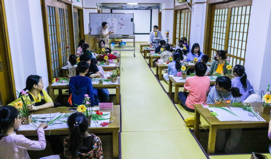 日式花艺茶道文化体验项目由我校日语外教亲自授课,从茶叶与花材的选用,到环境创设,再到活动分组,每一个环节的讲解都认真而又细致。体验者们不仅初步体会了日本茶道的环节与内容,感受到了插花艺术的美妙,更能够从整场活动中,领略到一种精益求精的工匠精神。