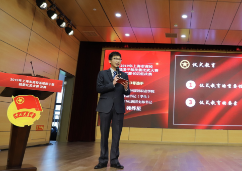 此次比赛共分为院系团干部组和团支部书记组两个组别。其中,团支部书记组由来自全市55所高校,共126名团支部书记参赛。我校韩烨星同学是此次入围决赛的唯一一名高职团支部书记。他曾带领所在团支部获2018年度“上海市五四红旗团支部”称号,团支部工作案例入选由上海市教委所征集的《上海大学生学习习近平新时代中国特色社会主义思想和党的十九大精神典型案例集》。