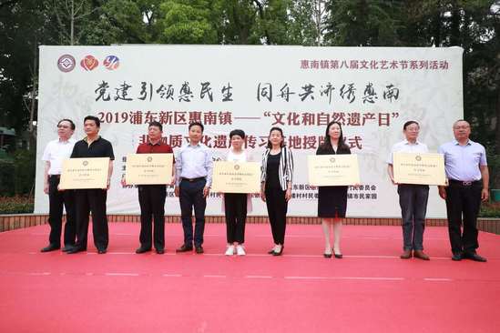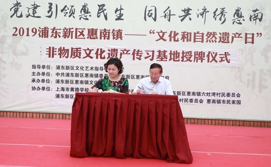 6月13日上午,我校新媒体与文法学院院长陈小明与副院长唐池珍携非遗社团成员,参加了2019浦东新区惠南镇“文化和自然遗产日”非遗传承基地授牌仪式。