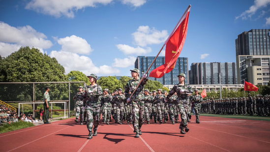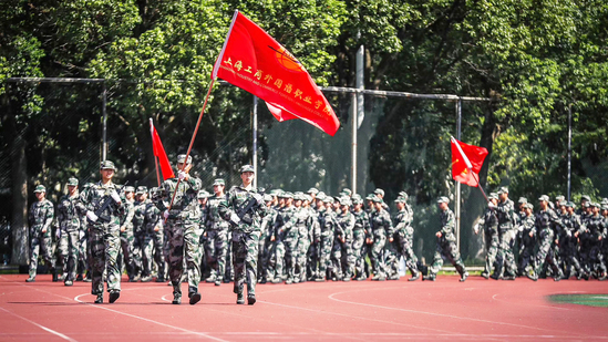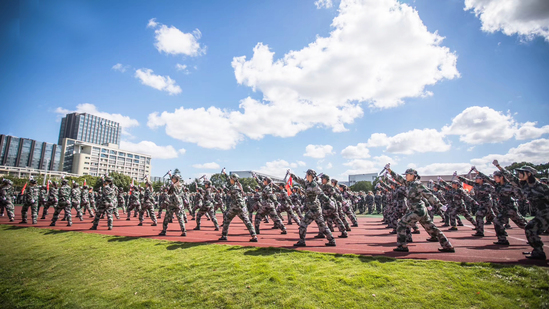 2019级学生开学典礼暨军训成果汇报在全体师生齐唱《歌唱祖国》的歌声中圆满落幕。