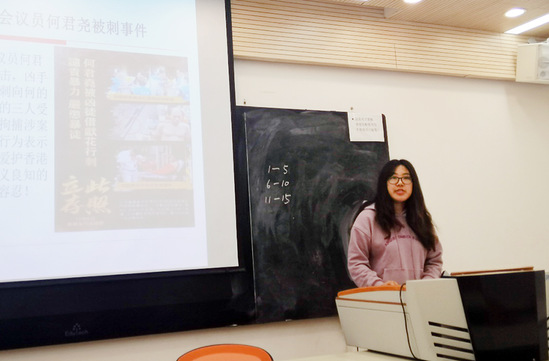 本次备课会由倪丽娜老师从香港近期发生的暴力事件、香港历史、香港当前发展现状、香港未来发展等方面为大家分享备课内容。11月4日晚,国家主席习近平在上海会见了出席第二届中国国际进口博览会的香港特别行政区行政长官林郑月娥,习总书记表示止暴制乱、恢复秩序仍然是香港当前最重要的任务,要做好与社会各界对话和改善民生等工作,希望香港社会各界人士全面准确贯彻“一国两制”方针和基本法,齐心协力,共同维护香港的繁荣稳定。