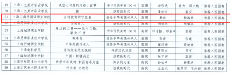 日前,2020年全国职业院校微视频大赛上海市复赛结果公布,我校新媒体与文法学院影视编导和新闻采编专业多名学生作品获奖。其中包括影编18级王佳奇的《叶传春生》,杨依的《乡村教育的守望者》,新闻18级江豪杰的《退伍不褪色》,新闻19级李鑫、马婧祎的《马背上的内蒙》,夏也清的《三军过后尽开颜》。