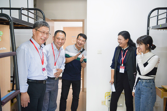 9日下午,校领导还走访慰问了少数民族学生,与大家亲切交谈,询问同学们“来自哪里”“来到上海生活是否适应”,并叮嘱同学们做好常态化疫情防控期间的个人防护工作,如果在校遇到生活或学习上的困难,要及时向宿舍工作人员和辅导员老师反映,学校定会尽力满足同学们的需求,让同学们来到工商外就像在自己的家里一样温暖。慰问过程中,校领导还实地察看了生活用水、洗衣房、卫生间等生活设施情况,并嘱咐后勤人员务必要加强安全隐患排查,为学生的安全保驾护航,为他们提供良好的学习生活环境。