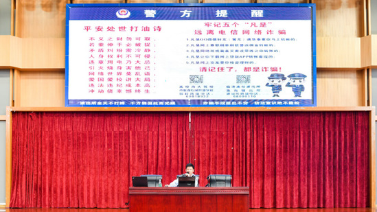吴警官运用生动形象的语言,结合视频案例,介绍了校园贷、防盗、防骗、保护人身安全等方面的知识。通过剖析大学生身边的典型案例,讲解与大学生相关的常见偷盗诈骗技俩,让同学们了解网络传销、校园贷(套路贷)、刷单与代运营、信用卡诈骗等犯罪方式,掌握防骗知识,呼吁大家树立起防范意识。