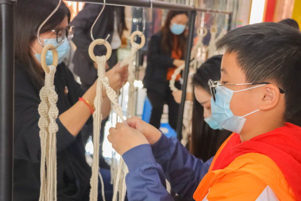 活动过程中,创意设计学院师生向大家播放了关于绳编的演示片并做实际操作示范,体验者们不仅仅初步学习和实践了绳编技艺、流体画绘画过程,也增加了对优秀传统文化的热爱。家长们也表示能和孩子一起参加这次活动,提高了动手能力,最关键是增加了孩子的自信心。