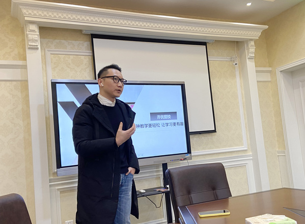 田老师在会议上分享了在线教学的经验,详细介绍了齐优爱校在线教学平台的优势和搭建在线课程的必要性,并且同与会的老师们讨论了在线课程建设和在线教学活动的发展前景。