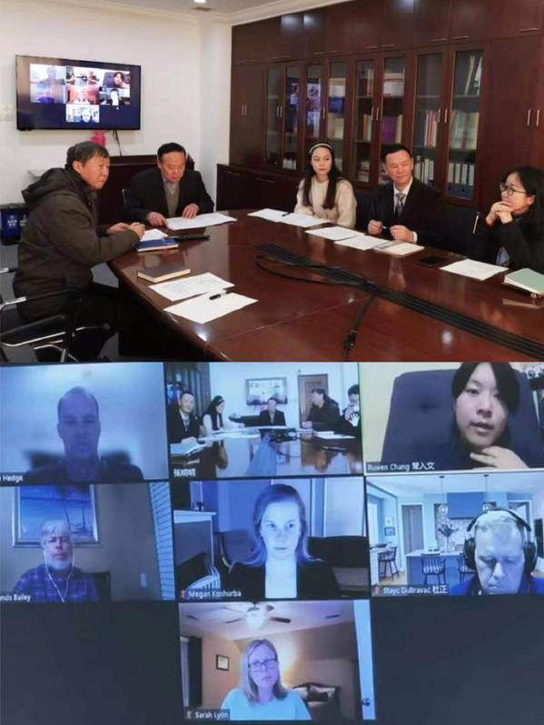 3月10日,我校与美国肯塔基大学举行了视频会议,双方具体商议了关于肯塔基大学文理学院语言学和教育学硕士专业在我校英院设立研究生英语教学实习基地的项目。我校副校长陈万里,英语语言文化学院院长吴建国,国际教育学院院长、外事处处长严庭国,英语语言文化学院副院长李爱群,外事处副处长琚俊超等参加了会议。美国肯塔基大学研究生院副院长Dr. Sarah Lyon,世界语言教学硕士项目(MATWL)主管Dr. Stayc DuBravac,TESL项目主管Dr. Francis Baily,现代和古典语言、文化文学主席Dr. Jeffrey Peters,国际事务助理院长Jesse Hedge参加本次会议。视频会议由国际教育学院院长、外事处处长严庭国主持。