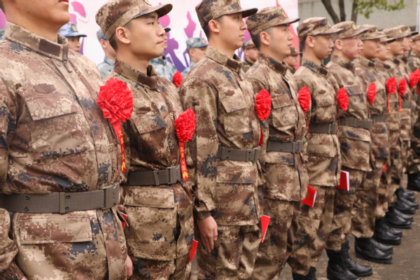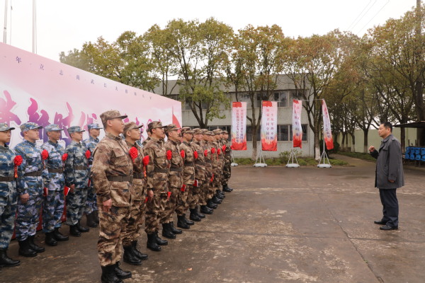 党委副书记、副校长段仁启代表学校向应征入伍学生表示问候,为他们发放慰问品、颁发“入伍通知书”并佩戴光荣入伍红花。他对同学们也提出了殷切期望:大学生作为中国青年的优秀分子,国家宝贵的人才资源,在肩负中华民族伟大复兴历史使命的强军道路上无法缺席,也不能缺席。同学们携笔从戎,充分展现了保家卫国的使命担当,希望大家尽快完成从学生到军人身份的转变,秉持奋斗之志,争取建功军营,把满腔的热情转化为报国之志,奋发有为,学有所用,在强军兴军伟业中积极发挥自己的聪明才智。