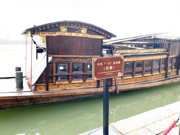 登上湖心岛,便看到那艘灿亮夺目、改变民族命运的红船了。这条红船是我们党的“母亲船”,是中国共产党探索救国救民道路的光辉起点。100年前,中国共产党第一次全国代表大会就是在南湖的一艘画舫上完成了最后议程,宣告了中国共产党成立。“一大”会议闭幕,代表们当夜分散离开嘉兴,革命火种传播到全国各地,从此,中国革命的船舶从南湖扬帆启航。