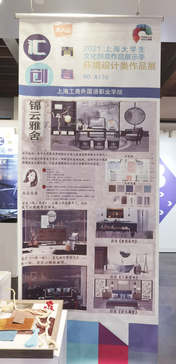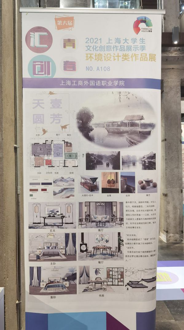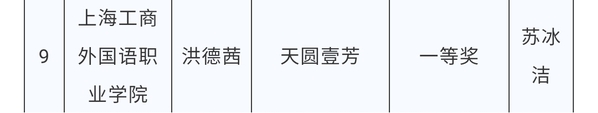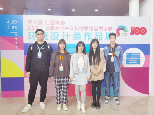 由中共上海市教育卫生工作委员会、上海市教育委员会主办的第六届“汇创青春”(环境设计类)上海大学生文化创意作品展示活动中,我校创意设计学院由苏冰洁老师指导的学生宋冰冰、洪德茜的作品入围参展,其中洪德茜的作品《天圆壹芳》脱颖而出,荣获一等奖。