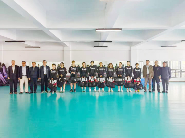 随后,校领导为运动员们颁发了学校定制的运动装备,党委书记李月松为球队授旗。