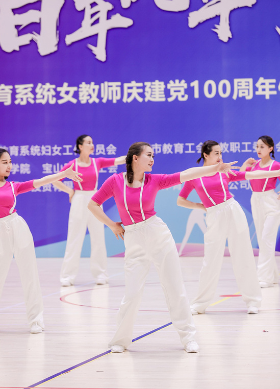 5月23日,由上海市教育系统妇女工作委员会、上海市教育工会女教职工委员会主办的“恰百年风华,展教苑群芳”上海市教育系统女教师庆建党100周年健身操展示活动在上海体育学院举行,活动共吸引了来自上海各高等院校以及市、区教育系统的59支队伍参赛。我校代表队荣获优胜奖。