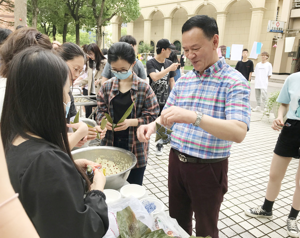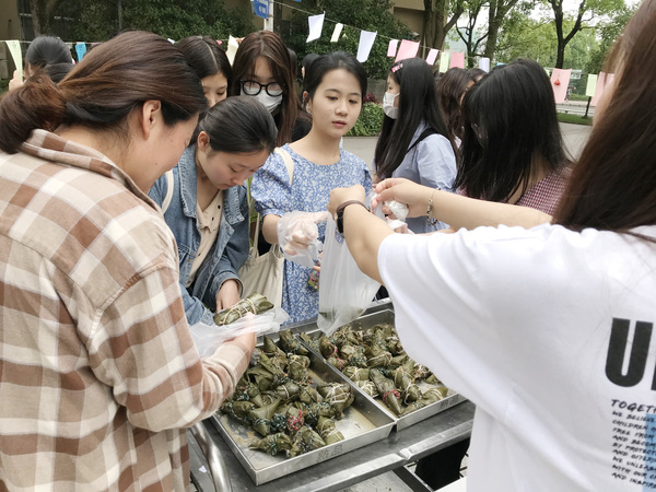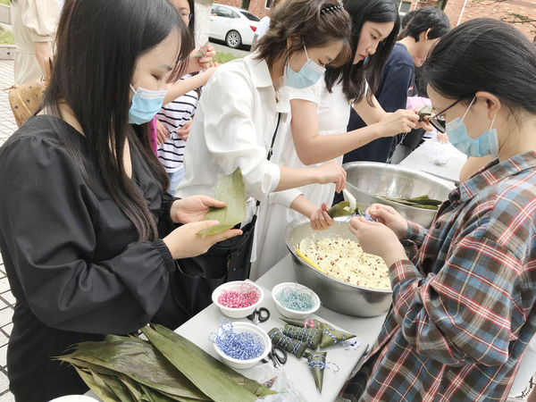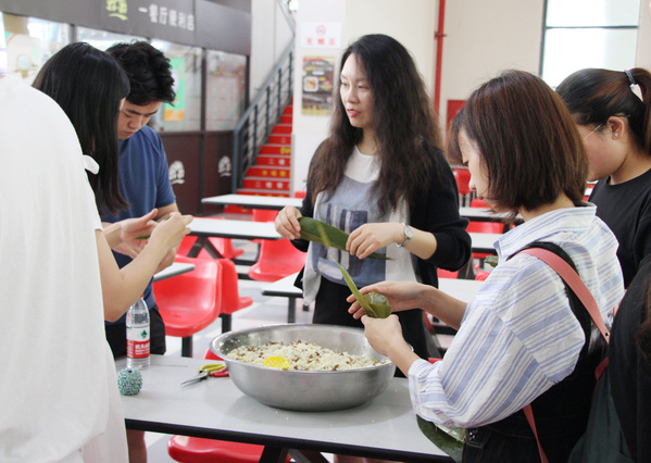 一年一度的端午佳节即将来临,为提高学生对中国传统文化的学习兴趣,更好地了解中国传统节日的习俗,6月4日中午,英语语言文化学院在中校区广场举行了“英语文化节——粽叶飘香”活动,同学们在现场包粽子、猜谜语,参与各种不同形式的游戏和活动,气氛十分热闹。