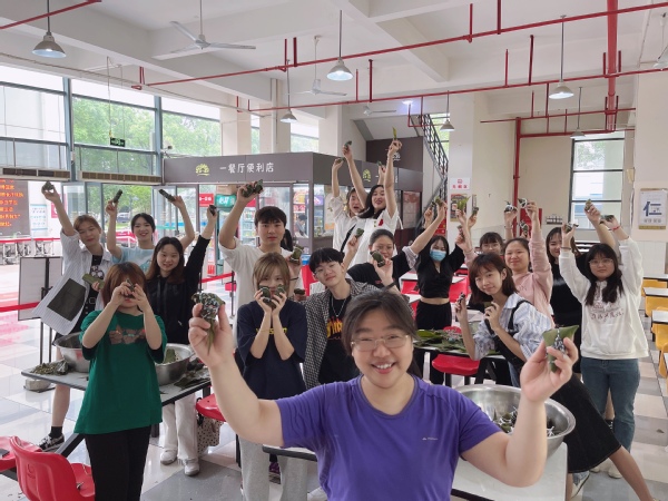 在活动正式开始前,师生们邀请了师傅在北区食堂一楼进行了一场学习包粽子的“热身培训”,同学们认真学习,努力尝试,一个个圆润、饱满的粽子“诞生”了,它们整齐的排列在铁盘中,一眼看上去十分诱人,经过食堂师傅的指导,同学们亲手将自己包的粽子煮水下锅,些许时间过后,香喷喷的粽香萦绕整个空气中,大家欢呼雀跃,体验着亲手包粽子的乐趣,感受着浓厚的文化氛围。