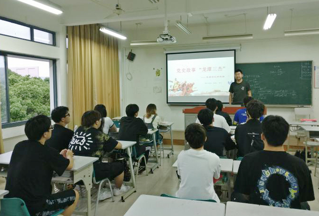 通过党课的聆听,在场的师生们了解了“龙潭三杰”,这是源于周恩来对李克农、钱壮飞、胡底三名中共中央特科情报人员的总称。“龙潭”取自龙潭虎穴的意思,表示三人所处环境的险恶。“龙潭前三杰”指的是李克农、钱壮飞、胡底,“龙潭后三杰”指的是熊向晖、申健、陈忠经。他们共同从事党的情报工作,利用自己在国民党政权中的职位便利,为中共的地下工作做出过突出贡献。