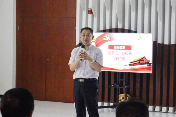校党委副书记、副校长段仁启致辞。他对师生们的实训实践成果展表示肯定,他指出,会展专业举办的实训实践成果展既有创意也有特色,围绕庆祝建党100周年的主题,将专业理论知识的学习转化为实践成果,既让同学们在实践中深刻理解了专业所学,又传播了红色文化。他希望同学们要珍惜并抓住学院搭建的平台,大胆创新、锐意进取、努力奋斗,迸发出更多新思路,创作出更多新作品,并预祝活动圆满成功。