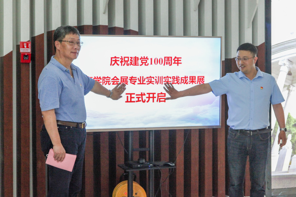 商学院会展专业实训实践成果展是商学院党总支“我为群众办实事”项目之一,活动以红色文化为载体,庆祝建党100周年,传承红色精神。
