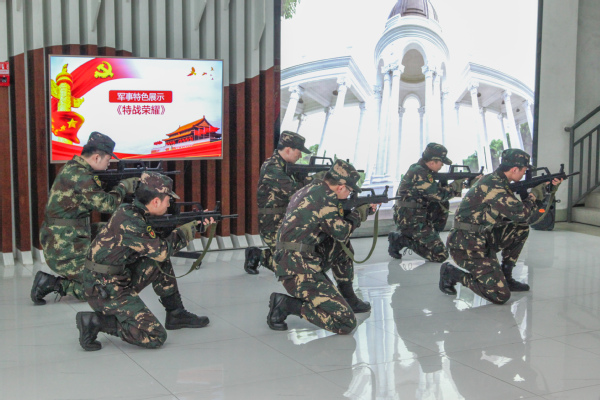 开幕式上,军旅社还为大家带来了军事特色展示《特战荣耀》,会展专业的学生代表表演了合唱《我爱你,中国》,现场气氛热烈。