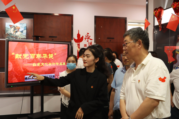 在建党100周年来临之际,6月17日,创意设计学院在三号楼二楼展厅举行了“献党百年华诞---红色文化设计主题作品展”。校党委书记李月松,创意设计学院院长王正明,各党总支、直属支部书记,各职能部处相关领导、教师出席现场活动。