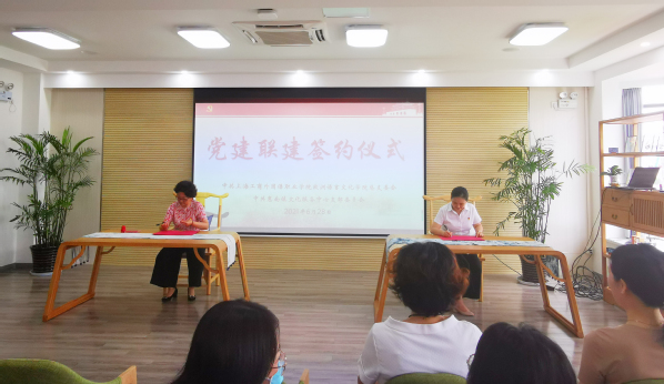 首先,欧洲语言文化学院党总支书记周燕与文化服务中心党支部书记何韧在党建结对共建协议上签名。本着“资源整合,优势互补,资源共享,互利共赢,共谋发展”的基础上,达成党建共建合作的共识。