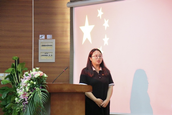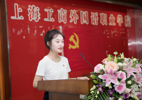 欧洲语言文化学院法语1801班王艺璇同学作为毕业生党员代表发言。她回顾了三年工商外期间在学习生活上取得的进步,重点讲述了自己是如何不断明确入党动机向党组织靠拢的过程,同时也表明了作为一名预备党员毕业后的努力方向。最后,她对党组织、母校、老师们的培育之情表达了衷心感谢。