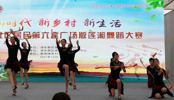 大风泱泱,大潮滂滂;中华文化,源远流长。为提高大学生文化自信,保护和宣传非物质文化遗产,学校新媒体与文法学院倾心打造上海非遗文化“打莲湘”传承基地,发展“打莲湘”特色社团。10月16日,社团前往惠南镇海沈村参加了“2021年上海城市空间艺术季”系列活动之惠南镇打莲湘舞蹈大赛,并获二等奖。