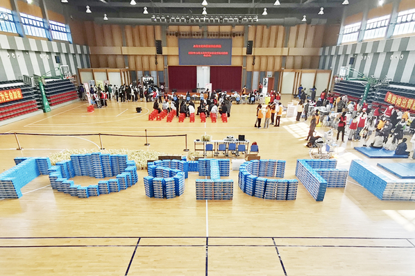 此次献血吸引了广大师生的踊跃参与,献血两天的上午9点到下午16点,南区体育馆内等待献血的队伍持续呈长龙状,大家按照要求,依次有序进入。献血过程中各院(部)辅导员老师也同志愿者一起热情、认真的协助工作人员工作,为同学们端送红糖水,热心与同学交流,缓解同学的紧张情绪。