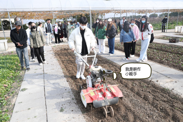 进入农场后,农场工作人员向大家详细介绍了农场的基本情况与深秋季节农作物的种植情况,师生们对冬季农业种植知识有了基础了解。随后,师生来到蔬菜种植基地,在农民伯伯的现场示范教学指导下,大家进行了卷心菜苗种植与微耕机耕作劳动。在劳动中,同学们不仅掌握了蔬菜种植与微耕机操作的根本方法,而且通过体验也感受到农业劳作的艰苦,大家不禁感叹现代农业生产技术的先进性。
