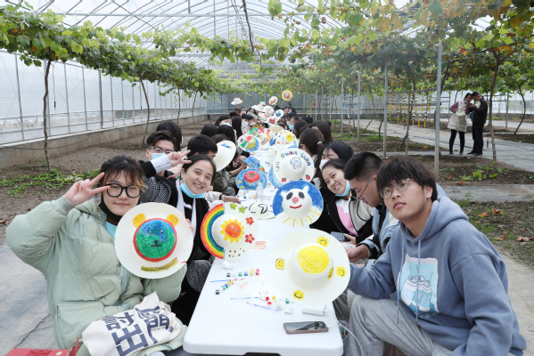 深秋的农场果园,没有春夏果园的五彩缤纷,但是果园工作人员的背影却随处可见,因为所有的丰收都源于汗水的浇灌与辛勤的耕耘。师生们通过草帽画创作也为深秋的果园点缀上了五彩的颜色。