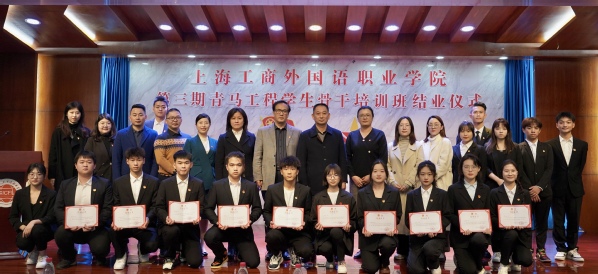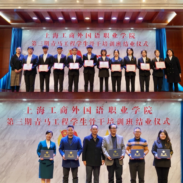 12月10日下午,学校第三期“青马工程”学生骨干培训班结业仪式在四号楼报告厅举行,校党委副书记、副校长段仁启,上海商学院陈志强教授,上海市青少年活动中心中国100办公室高佳欢,基础教学部主任沈李,党委学工部部长陈瑜,基础教学部副主任韩伟,团委书记杨燕玲以及各二级学院分团委书记作为嘉宾出席本次仪式。