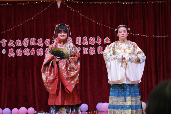 随后,选手们分别表演了英语《儒家文化介绍》、《中国年菜背后的意义》、《西游记》配音、《水调歌头》、《汉服介绍》、《茶文化》、《英语讲述中国故事的重要性》、《中国梦》、《汉服秀》、《衣食住行》。演出过程中,选手们声情并茂,自信乐观,展示出自己独特的风采和良好的口语能力。舞台上选手们精彩的节目表演,引得台下同学们热烈回应,掌声阵阵。