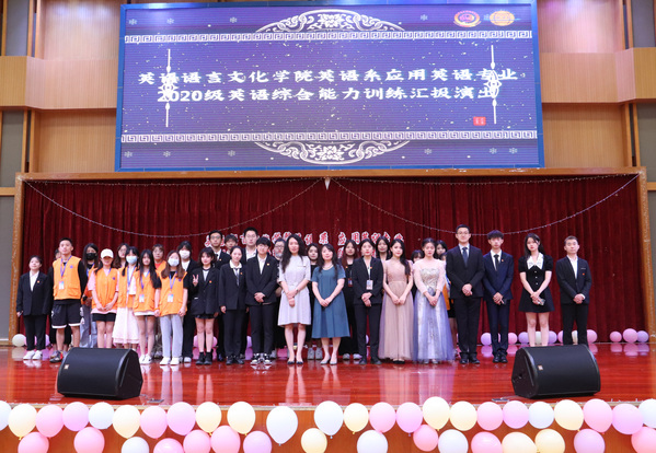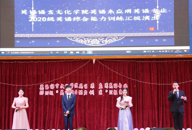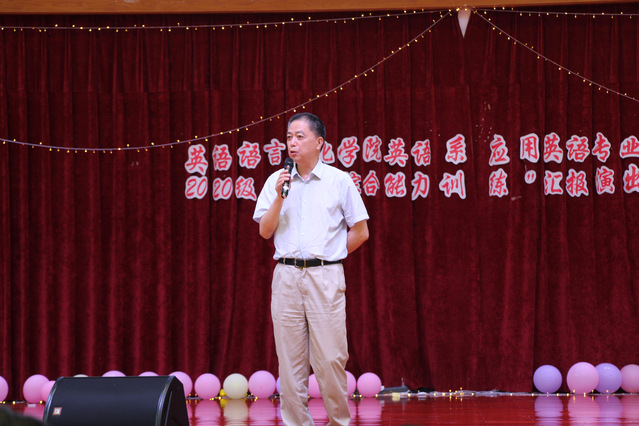 英语综合能力训练汇报演出是英语语言文化学院实践教学的重要环节,为了更好地激发同学们的英语学习兴趣,营造浓郁的学习氛围,为学生搭建自我展示的平台,7月2日上午,2020级英语综合能力训练汇报演出在南区体育馆举行。校长孔凡邨,党委副书记、副校长段仁启,副校长陈万里,教务处处长张磊,基础教学部主任沈李,商学院院长刘丽,英语语言文化学院院长吴建国,副院长申洪波,英语系主任窦春霞,教师肖超、谢宁宁等出席。此外,来自商业会计学院的教师朱红萍以及跨境电商专业的同学们也一同观摩了本次活动。
