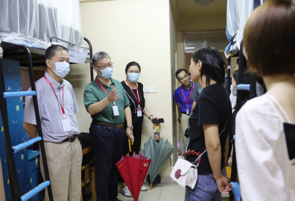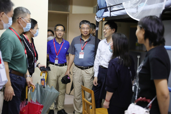 领导走访,详细询问;亲切关怀,温暖人心 校领导亲临迎新现场,了解新生报到情况,就学生和家长对学校情况、专业咨询、就业方向等多方面的疑问给予了认真解答,并向坚守岗位的工作人员和学生志愿者表示了慰问。 校领导还走访了学生宿舍,与大家亲切交谈,询问同学们“来自哪里”、“对校园人文、环境的感受如何”,并叮嘱同学们 “慢慢适应大学节奏,要好好学习、快乐生活”,“今后如果遇到生活、思想或学习上的困难、问题,可以及时向宿舍工作人员和辅导员老师反映,我们一定会尽力为你们排忧解难,来到工商外就把她当做自己的家”。走访过程中,校领导还实地察看了生活用水、洗衣房、卫生间等生活设施情况,并嘱咐后勤人员务必要加强安全隐患排查,为学生的安全保驾护航,为他们提供良好的学习生活环境。