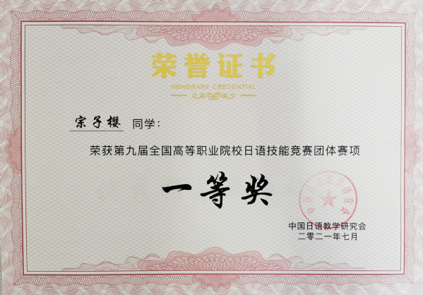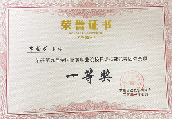 近日,第九届全国高等职业院校日语技能大赛评选结果公布,来自我校东方语言文化学院日语系专业学生刘思佳、罗嘉榛、宗子樱、李荣龙荣获团体赛项一等奖,吴鑫淼荣获个人赛项三等奖。教师崔京花、王杨超荣获“优秀指导教师”称号。