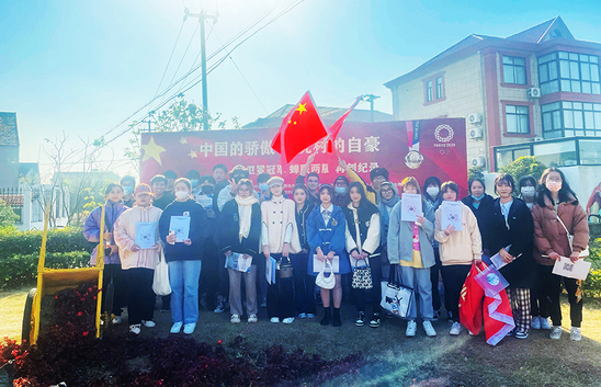 12月24日下午,上海工商外国语职业学院大一学生来到奥运冠军钟天使的家乡“网红冠军村”惠南镇海沈村。这是学校思政教学部组织的第十二组实践课团队,也是本学期最后一次实践教学活动,共有来自学前、艺术、游戏等专业的201名学生组成。思政教学部教师卜兆、倪丽娜和陈美玲带队青年学生,在自行车文化公园、花细草工坊、外来星工作室、小确幸画室、钟天使荣誉室等打卡点深度体验海沈村独具特色的人文艺术,学习钟天使顽强拼搏、奋勇向上的奥运精神以及感受上海农旅融合发展、乡村振兴的成果与底蕴。