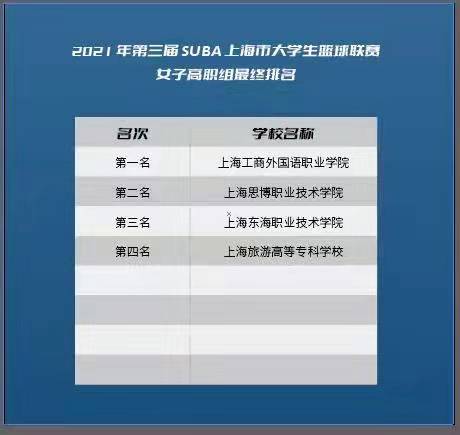 12月7日至12月23日,由上海市体育局、上海市市教育委员会主办,上海市大学生体育协会承办的2021年“第三届SUBA上海市大学生篮球联赛(高职高专组)”在上海体育学院徐汇校区举行。我校女子篮球队一路过关斩将,以4战全胜的战绩成功卫冕高职高专女子组冠军。