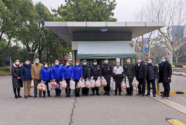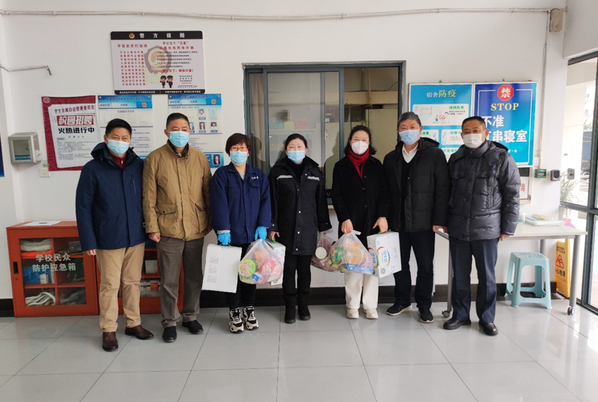 2月1日,大年初一上午,学校校长孔凡邨,党委书记李月松,党委副书记、副校长段仁启,党委委员、后保处处长张永生,校办主任傅建辉和学生处处长陈瑜等领导在相关职能部门负责人陪同下,看望慰问春节期间仍坚守在一线的后勤员工和假期留校师生,代表学校董事会和党政领导班子,向他们送去慰问品并致以节日的问候。
