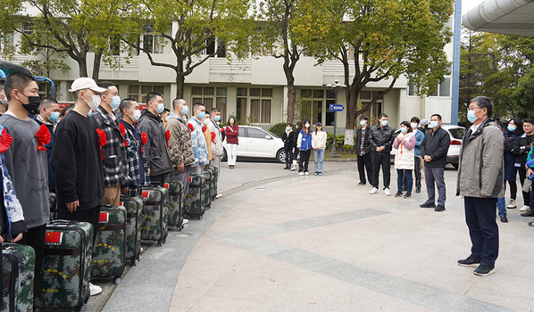 又是一年送兵日,热血男儿赴征程。为严格落实疫情防控,3月10日,学校在中校区东门举办了一场简短的2022年度春季入伍新兵欢送会。党委书记李月松,党委副书记、副校长段仁启,学工部、武装部部长陈瑜,各二级学院学生工作负责人,以及辅导员代表参加了欢送会。会议由陈瑜主持。