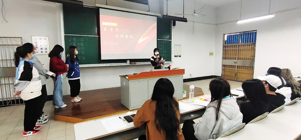 3月11日,学校思政教学部按照本学期教学计划,如期启动《毛泽东思想和中国特色社会主义理论体系概论》(以下简称概论)实践教学活动。为有效实现《概论》课教学目的,全体思政教师精心安排、认真组织,针对全体大一学生开展了“撼天伟业青年说”的校内实践教学活动,以班级分组形式,由学生组员围绕“毛泽东宏伟的一生”实践主题开讲,体现了“以学生为中心”的思政课教学改革理念,呼应了当代大学生的学习习惯和思维方式。这也是实践教学创新改革的一大亮点,使得《概论》课与时俱进,成为学生喜闻乐见的一门思政课程。