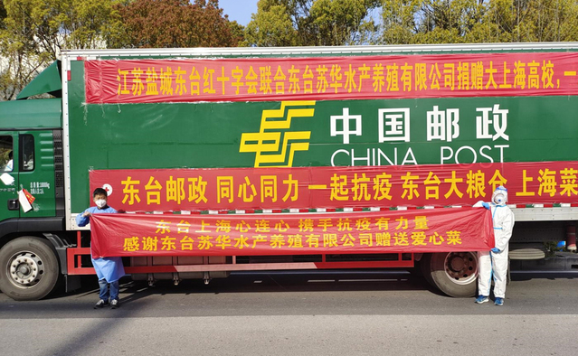 为支持上海市各高校抗疫工作,4月7日上午8:00,在上海市红十字会牵线下,我校收到了来自江苏省东台市鲜之味瓜果蔬菜种植专业合作社捐赠的4吨绿叶菜。物资抵达校园后,后勤保卫处张永生、沈产模,校团委徐萌以及数10名“大白”志愿者第一时间集结,赴南北校区进行卸货。