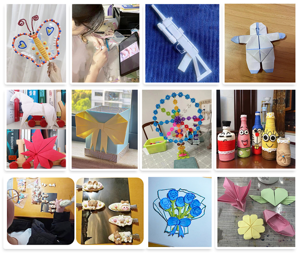 “折一折、粘一粘、做一做”是做手工时的“创意无限”,即便条件有限,却利用身边可利用的材料做出了琳琅满目的作品,其中体现的不仅是同学们的思考力、动手力,也尽显同学们在疫情下的生活态度,沉静而灿烂。