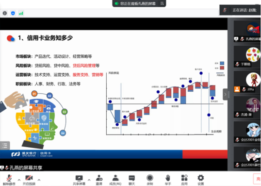 为了更好地对接浦发银行信用卡服务项目,商学院大数据与会计专业浦发订单班本学期在增开三门金融服务理论课程的同时,还特别邀请上海外服杰浦有限公司和浦发银行信用卡中心相关管理人员于4月至6月陆续开设了四场线上专题讲座。