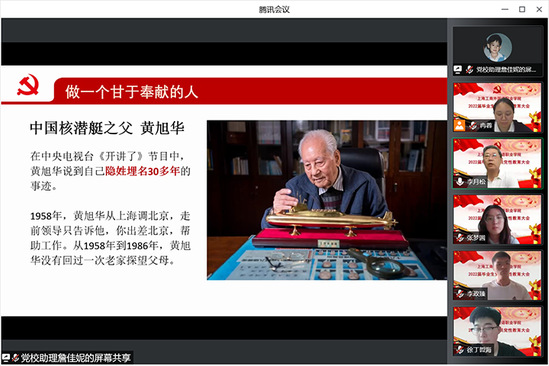 6月27日下午,2022届毕业生党员党性教育大会在腾讯会议上举行。学校党委李月松书记、组织部部长傅敏娜、各学院(部)党总支(直属支部)书记、党委专职组织委员、新发展教工党员、全体毕业生党员参加了大会。大会由学校业余党校负责人冉蓉主持。